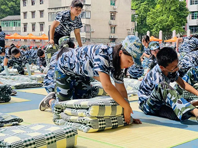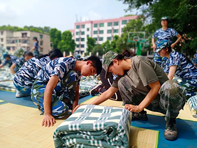 寝室内务整理是军训的一个重要方面,主要是对物品摆放、被子、铺面等统一规范,建立规范的内务制度,强化学生自我管理能力,强调内务整理的关键是整齐、干净。新生在教官的指导下认真做着,精神百倍,做到每一个细节角落。